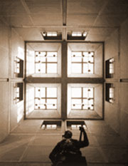 edificio urbano que no deja adivinar la solemnidad luminosa y