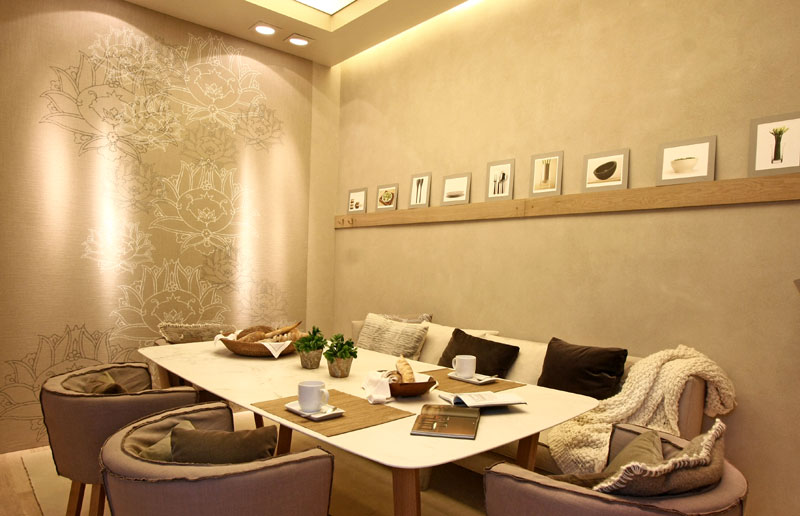 baja con patas de madera y tapa de mármol calacatta (Redimat),