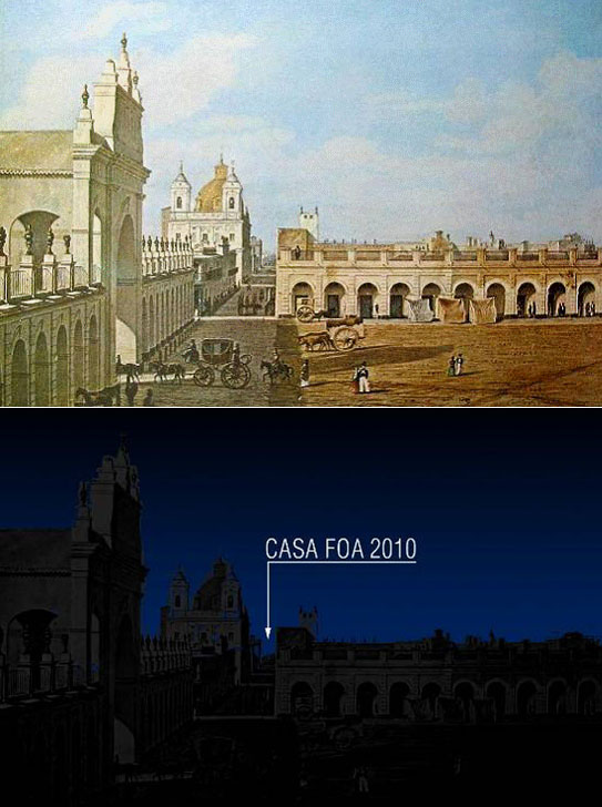 la zona en la que se ubica el edificio en diferentes épocas, en tres