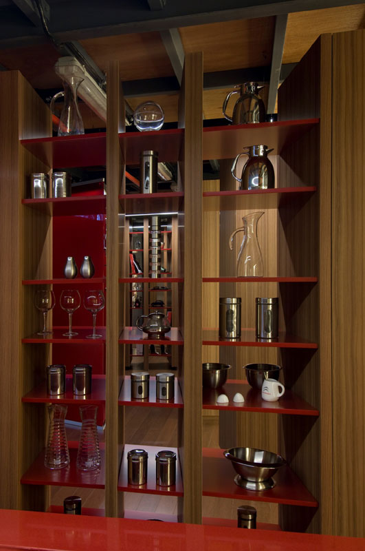 and red lacquer table for the island and glass to the