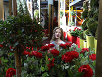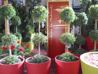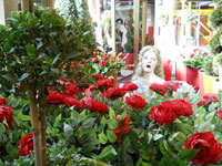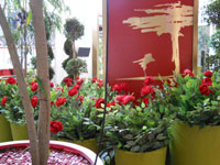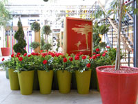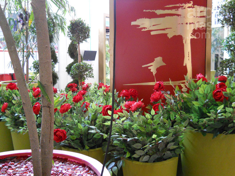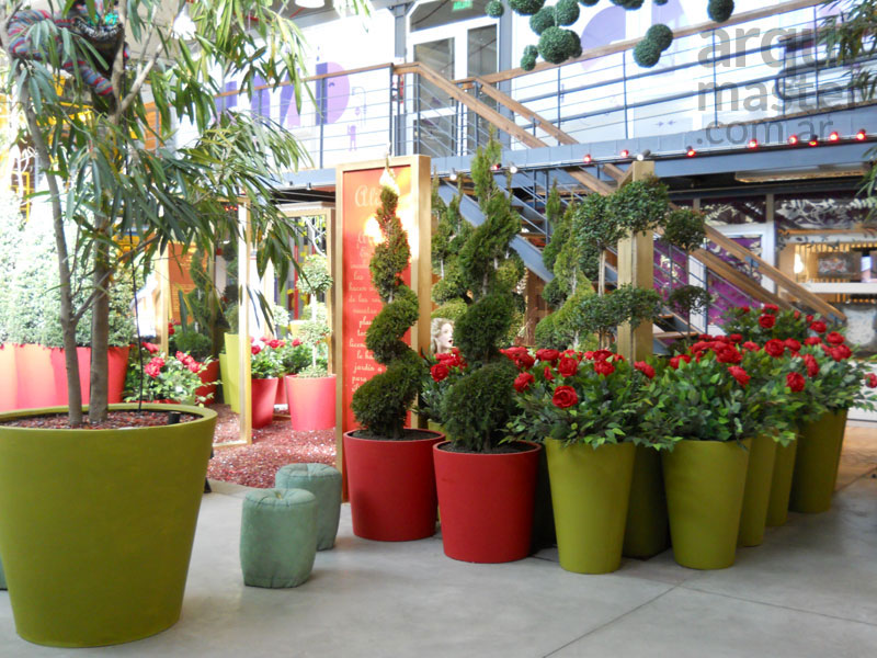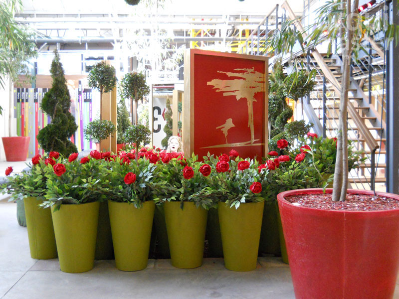 en macetones de rosas rojas