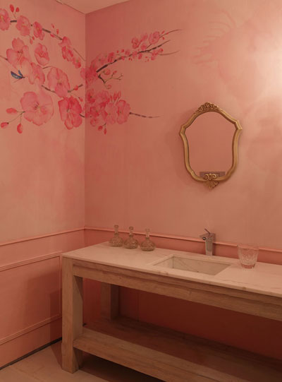 Rosa grumoso en baño
