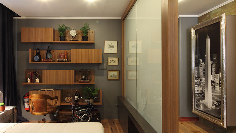 El tono gris oscuro de las paredes con el azul de las