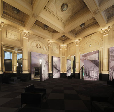 La alfombra reproduce el damero original del hall a