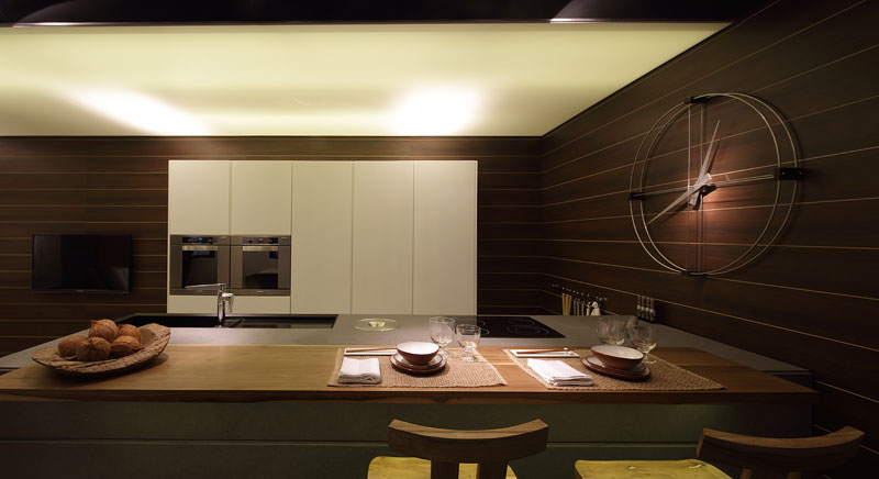 cocina, detrás de la gran isla,