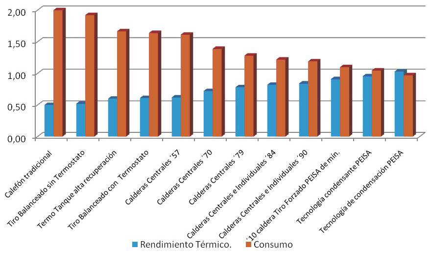 42% a los equipos de tiro balanceado sin control de temperatura. En el caso