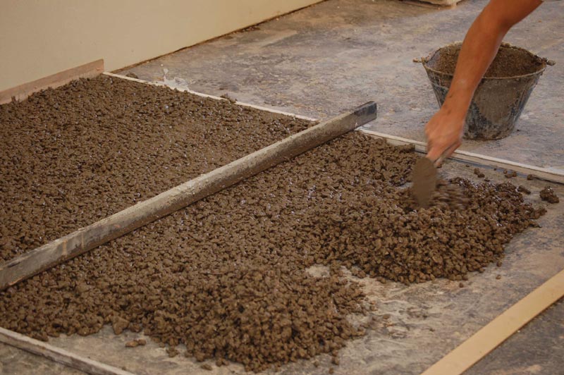 un importante aislamiento térmico y acústico además de actuar como agregado liviano, y los