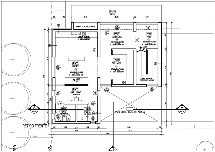 Programa en planta alta: escritorio, vestidor, master