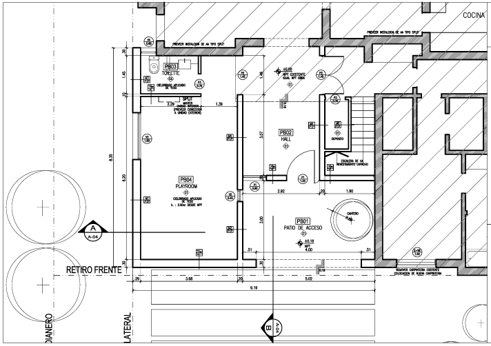 Programa en planta baja: hall acceso, circulación