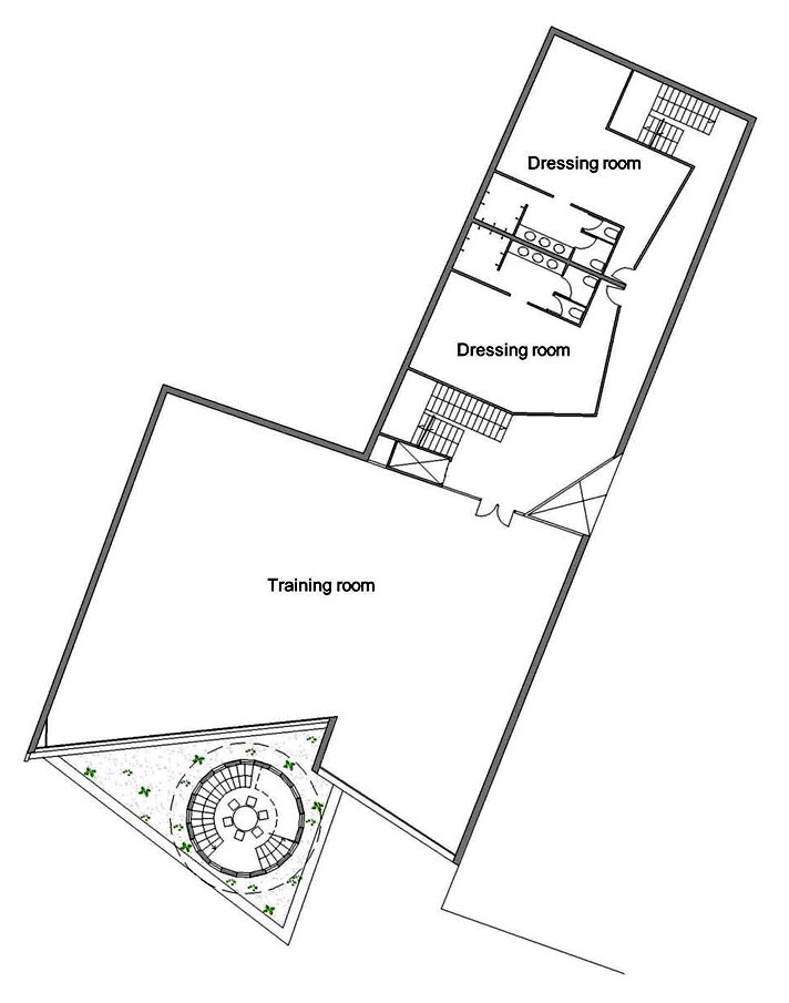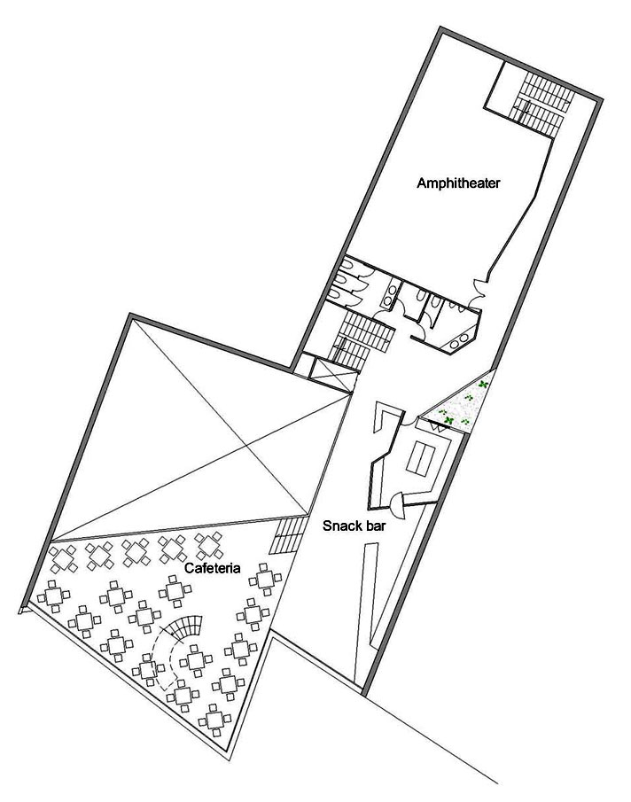 una escuela de danza (con 5 salas de entrenamientos), una cafetería, un restaurante,
