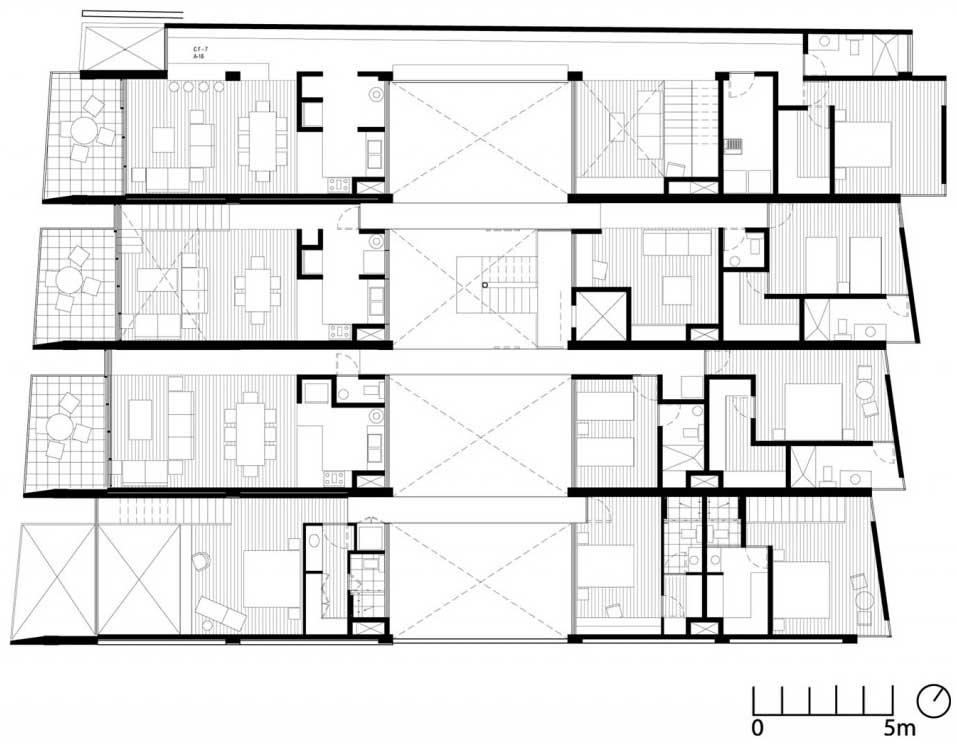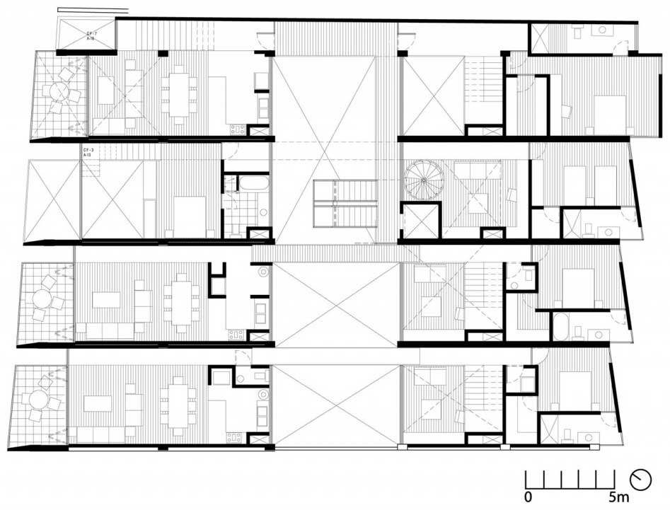 desordenado que es resultado de la diversidad de tipologías que se logran a partir del sistema planteado, los departamentos