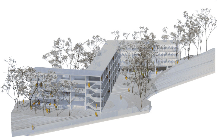pero se opta por partirlo en 3 piezas programáticas que solucionan de forma más amable y eficiente