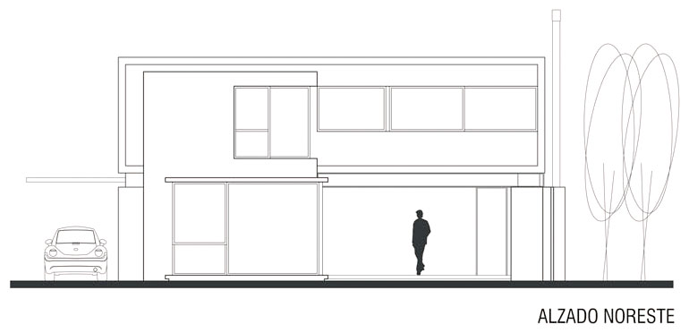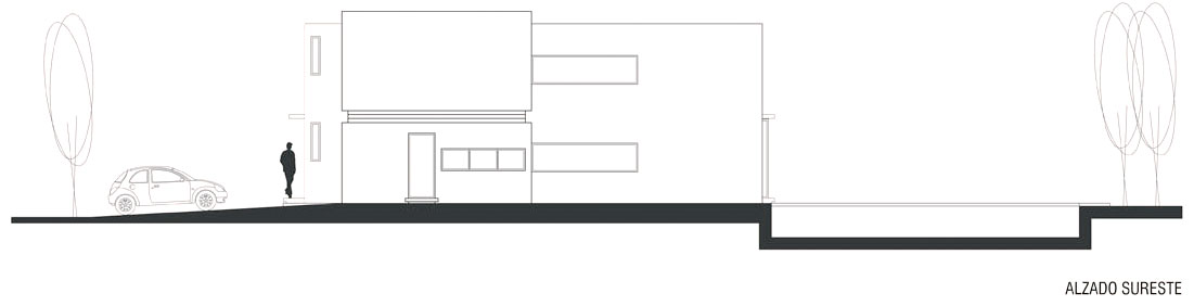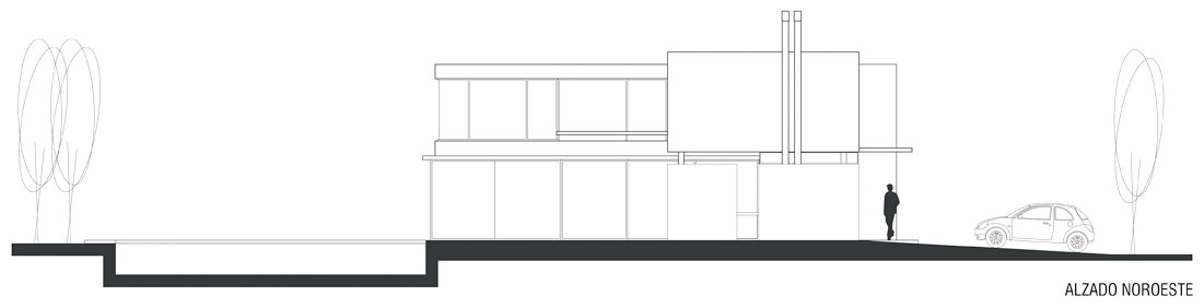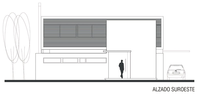 Hacia el frente, oeste, se organizó una fachada cerrada,
