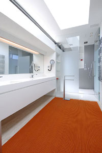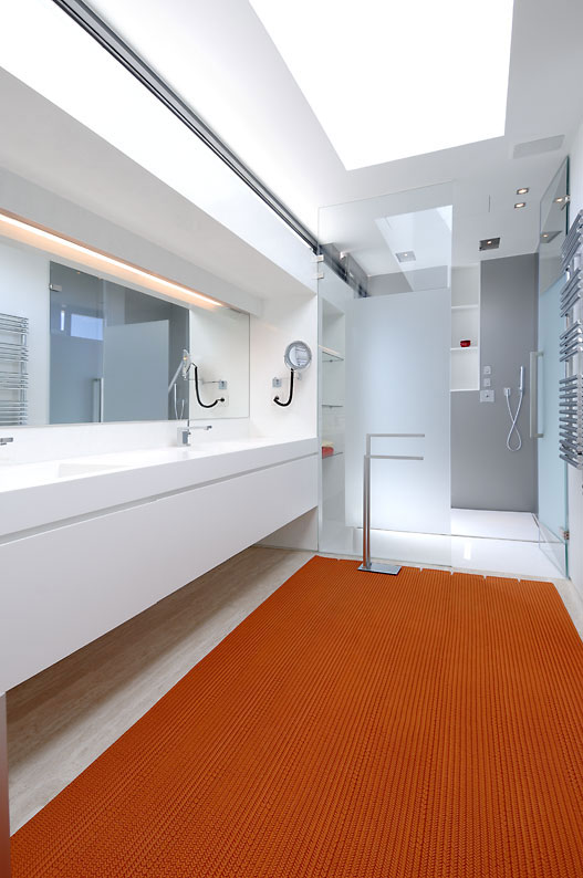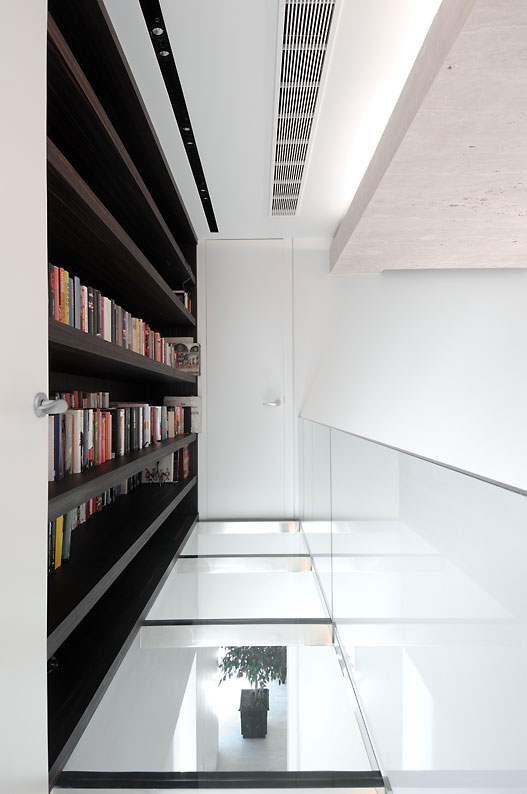 baño; un estudio que comunica con una pasarela-biblioteca