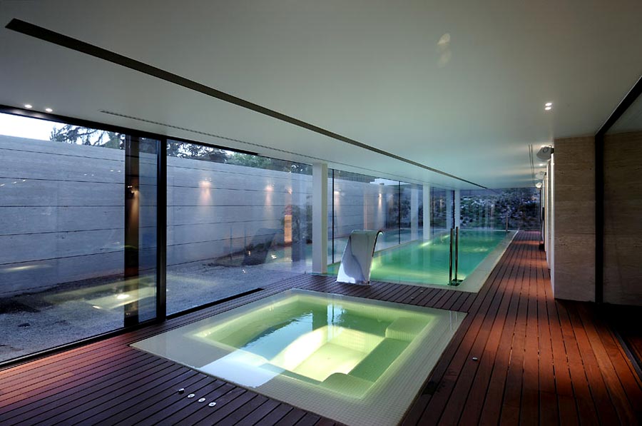 en ciertas zonas, como el garaje, la piscina interior