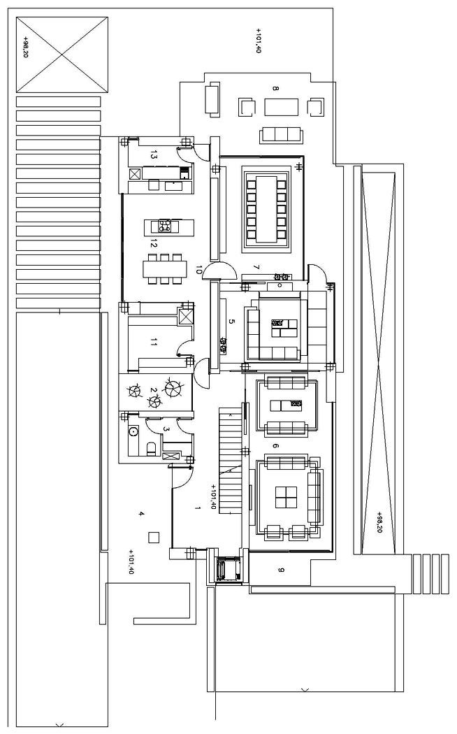 con el comedor. Unas escaleras interiores y un ascensor