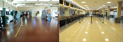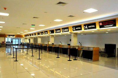 claramente los sectores de Partidas y Arribos de pasajeros.