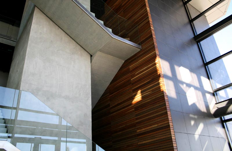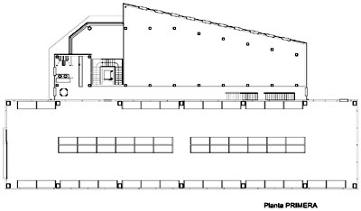 En el que podemos apreciar una caja de hormigón que alberga un ascensor y en torno a la cual surge la