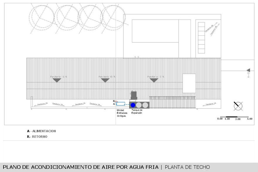 una losa canalón sobre el área de servicios.