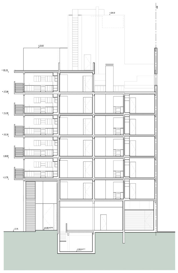 pisos con dos departamentos cada uno, un sexto como piso único,