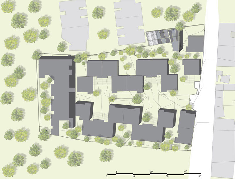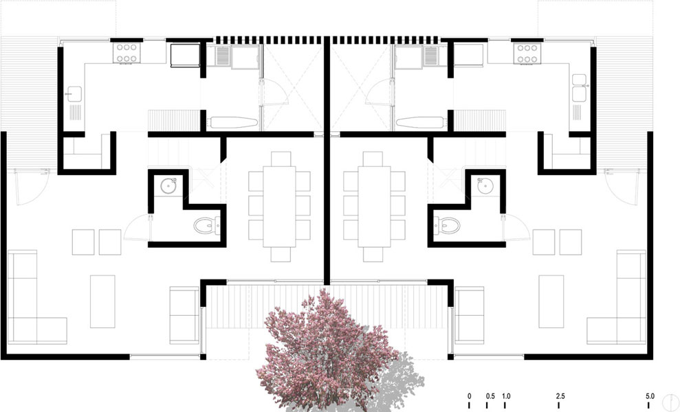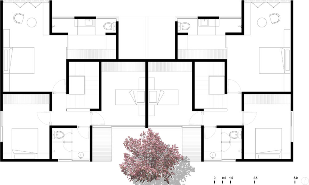 El esquema simétrico del conjunto de casas se