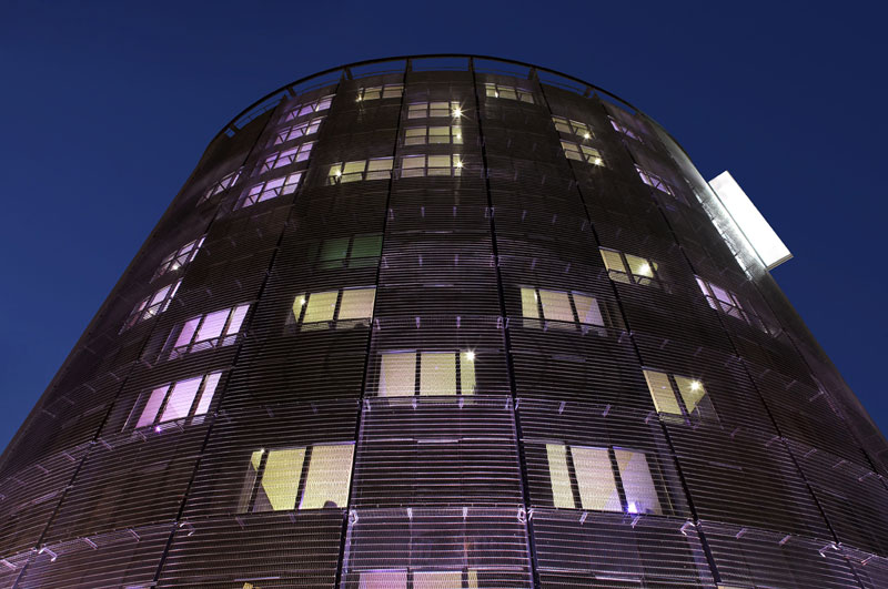 stainless steel skin standardizes the volumes, acting