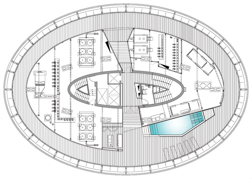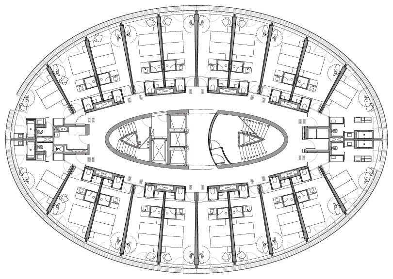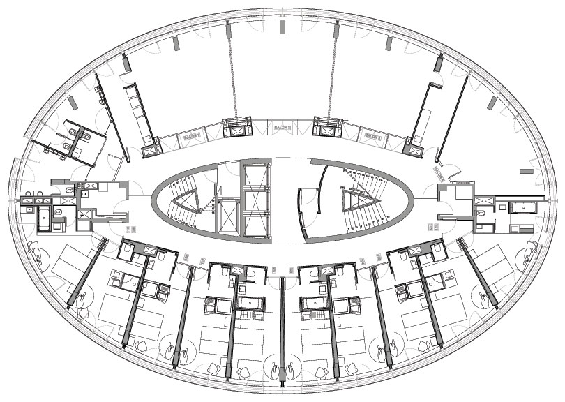 The hotel was built as an elliptical