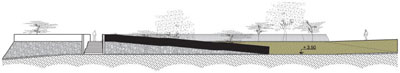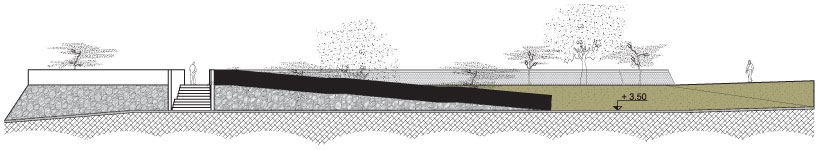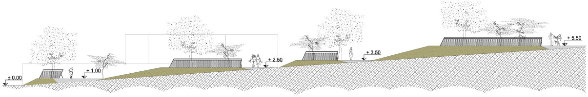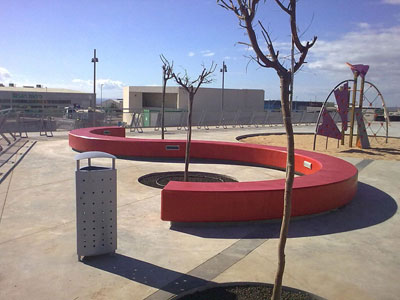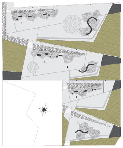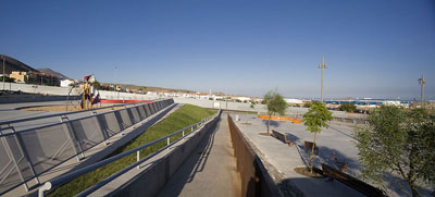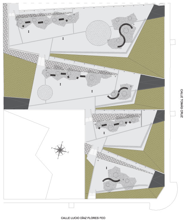 internos de escaleras y rampas y los accesos a la plaza, enfatizando