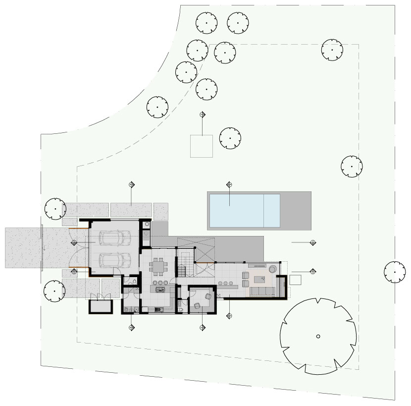 desde uno de los frentes del lote, se accede a la cochera,
