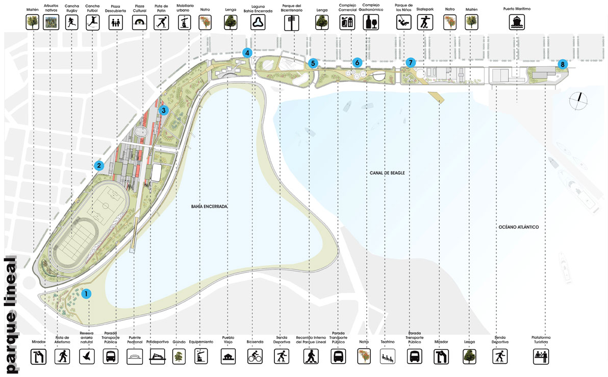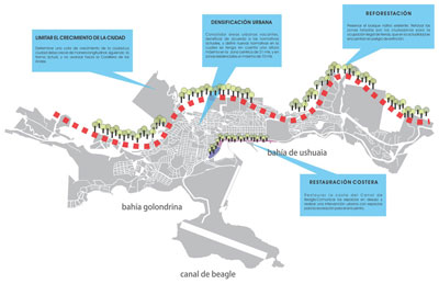 el frente costero de la ciudad de Ushuaia, que cuenta