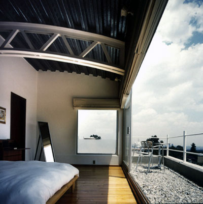 La recámara ubicada en la parte alta integra