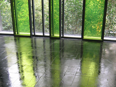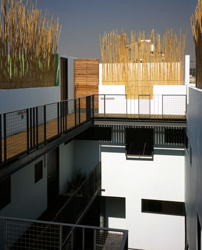 Es un gran volumen rectangular con 2 patios: uno trasero