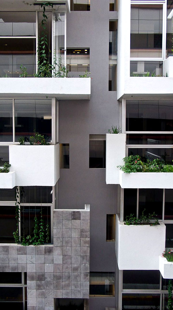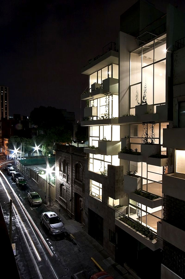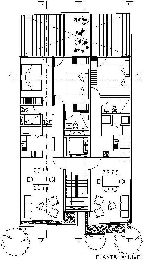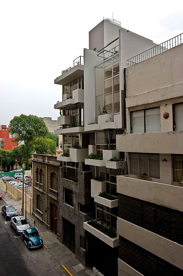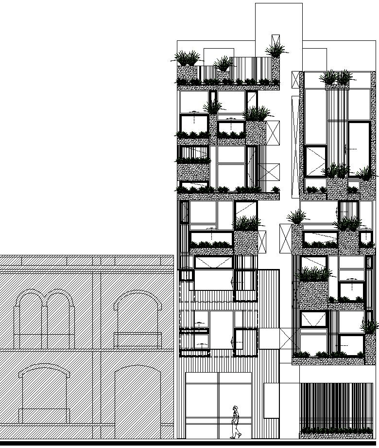 rectangular se desplanta un edificio de vivienda