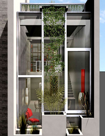 fachada principal, haciendo un buffer vegetal