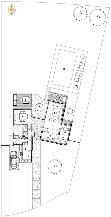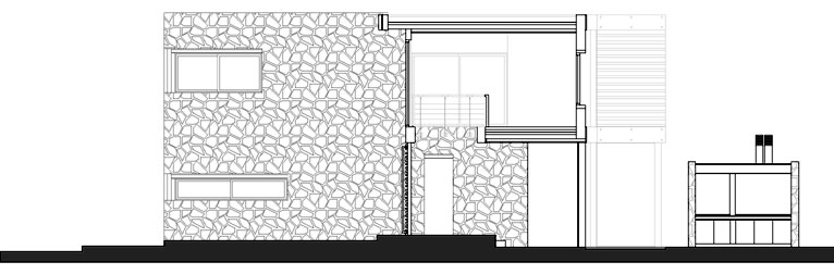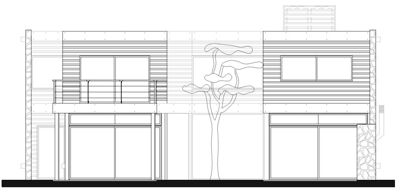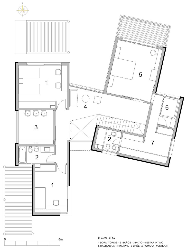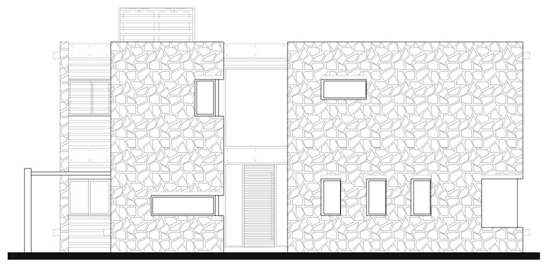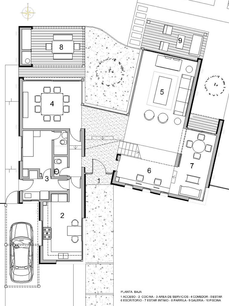 Siguiendo las líneas del lote, se propone la geometría de la casa como dos