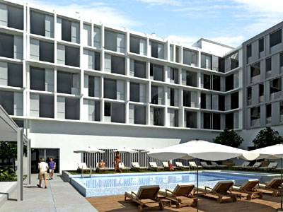 a zonas verdes, espacios de recreo, piscina y solárium.