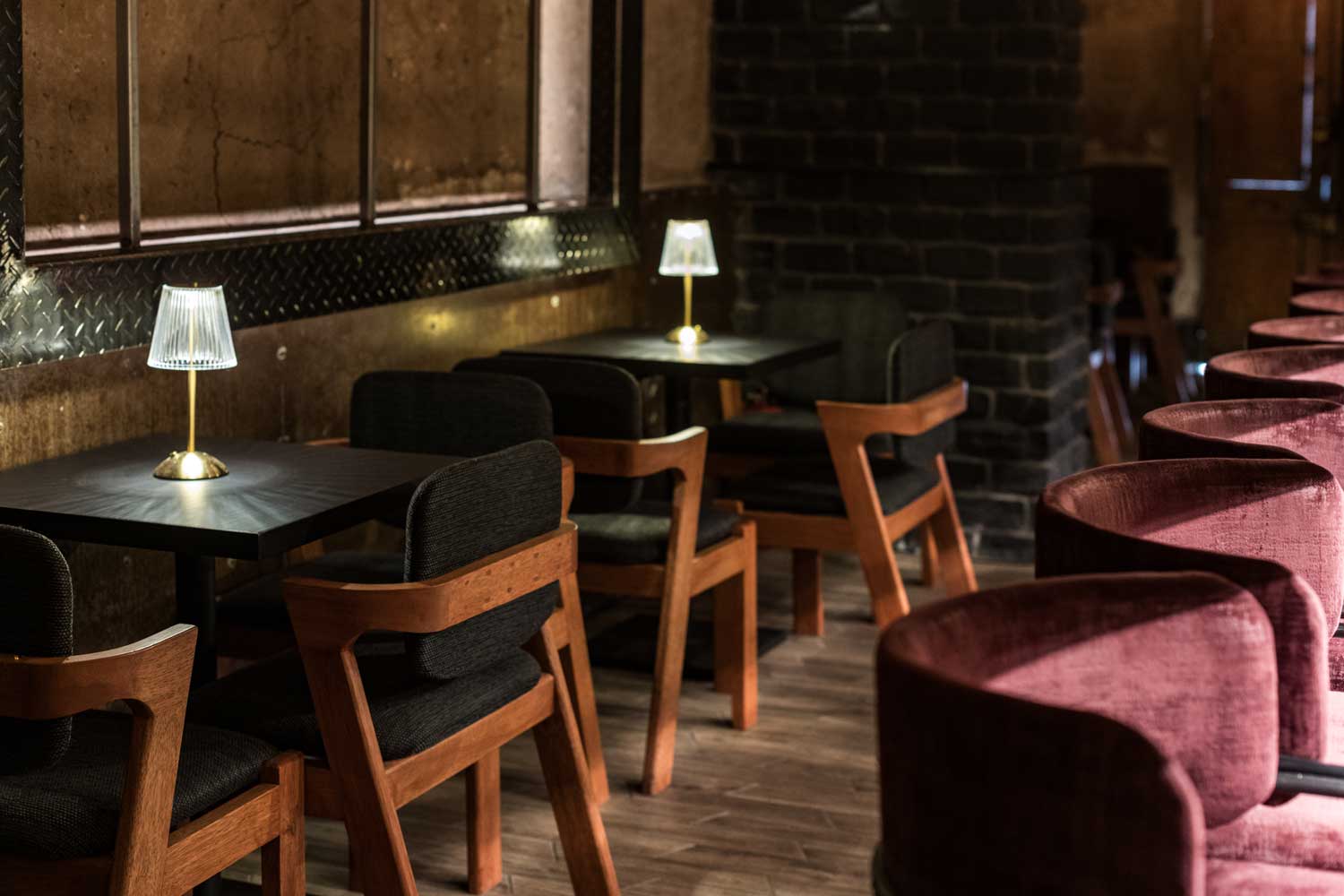 El proyecto parte de la esencia del trago que le da nombre: una mezcla precisa, intensa y elegante. Esa referencia se convierte en guía conceptual para un diseño que privilegia la materialidad sobria y atemporal, con acentos que evocan la estética Old Fashion.