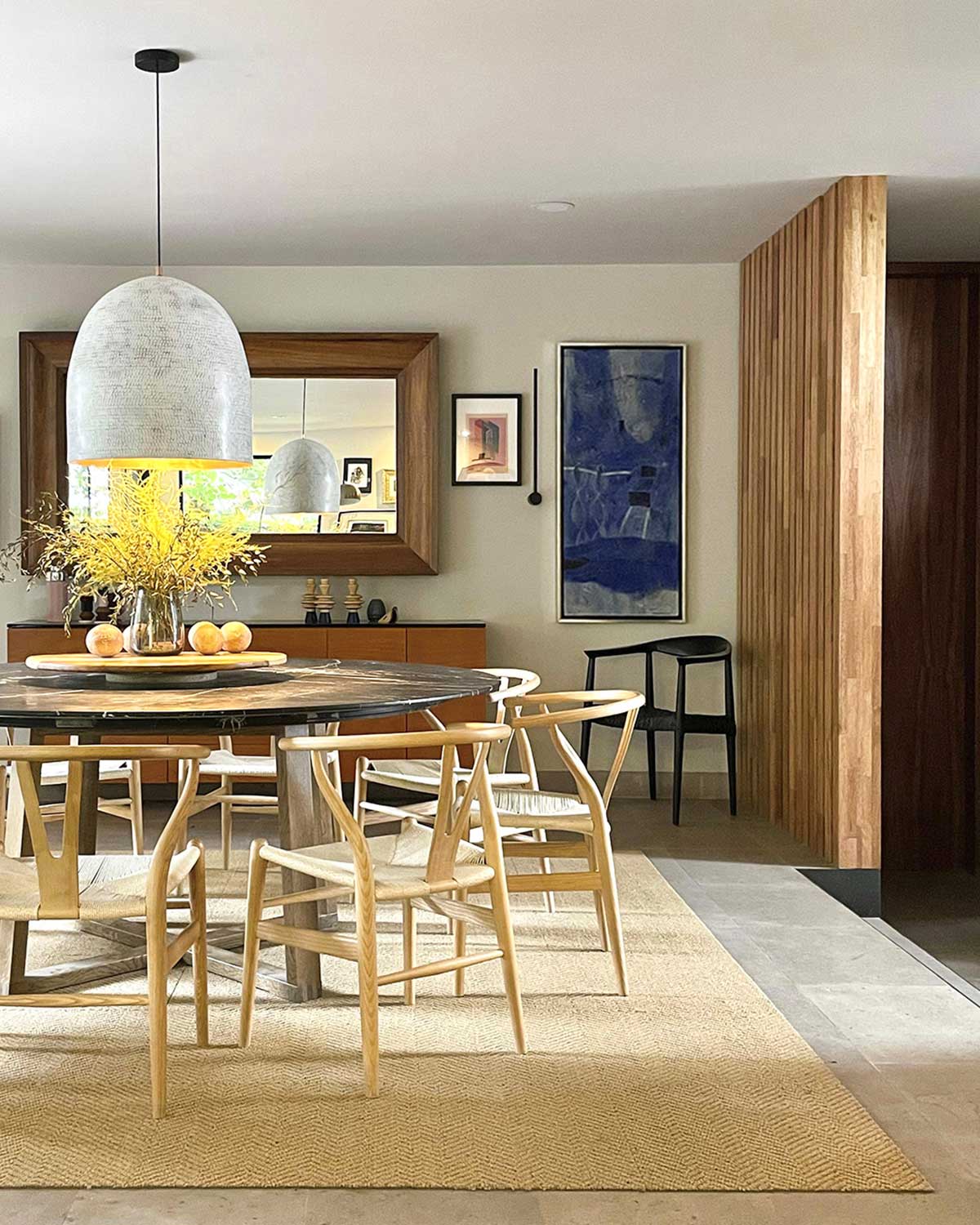 Retomando el concepto de hogar mexicano, el interiorismo se llena de texturas vibrantes y objetos auténticos, aportando un toque cálido y acogedor. Esta fusión entre la serenidad del diseño y la vitalidad de la decoración crea un espacio elegante y lleno de vida.