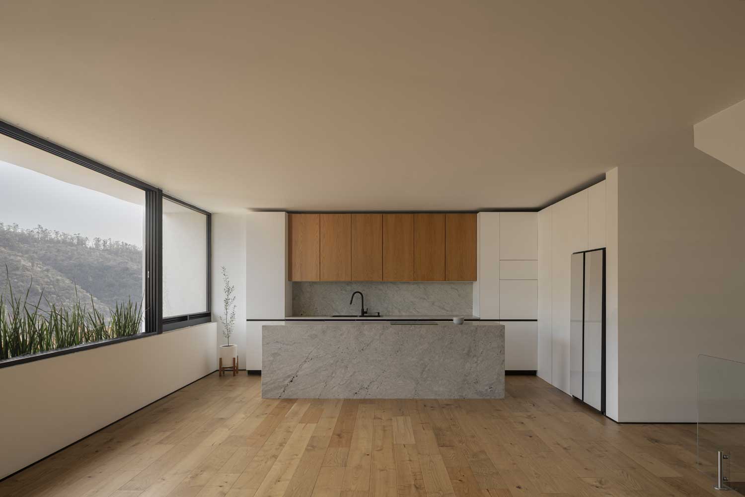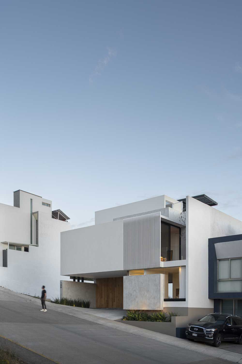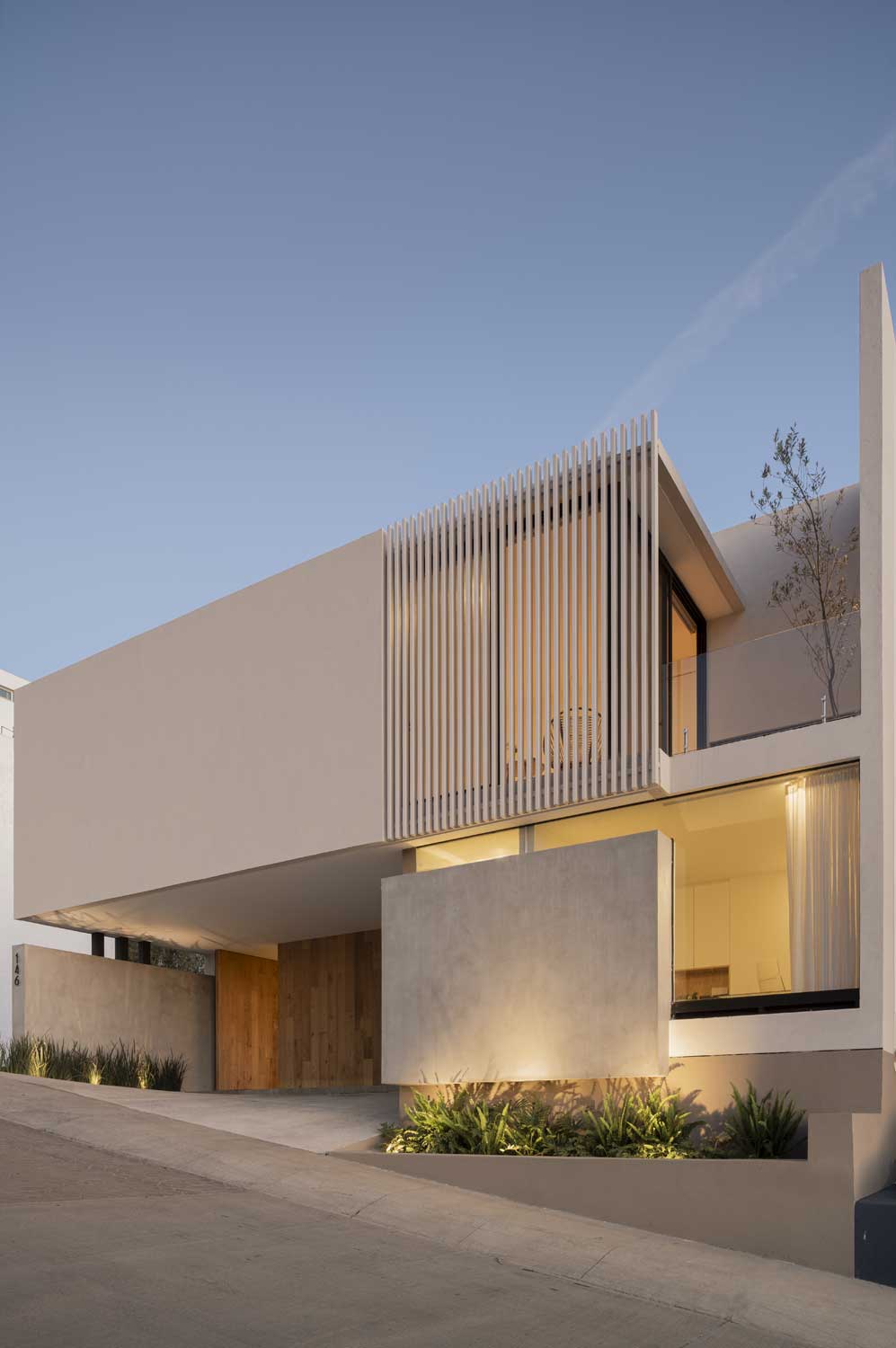 Ubicada en un fraccionamiento privado en la zona alta de Morelia, Michoacán, la casa aprovecha su emplazamiento para capturar vistas privilegiadas de la ciudad y sus atardeceres.