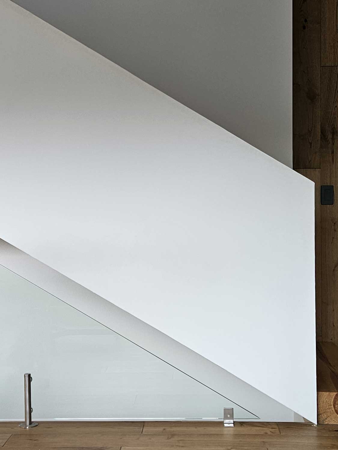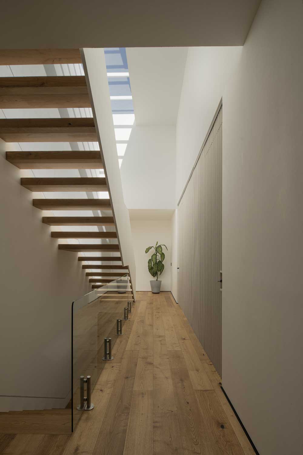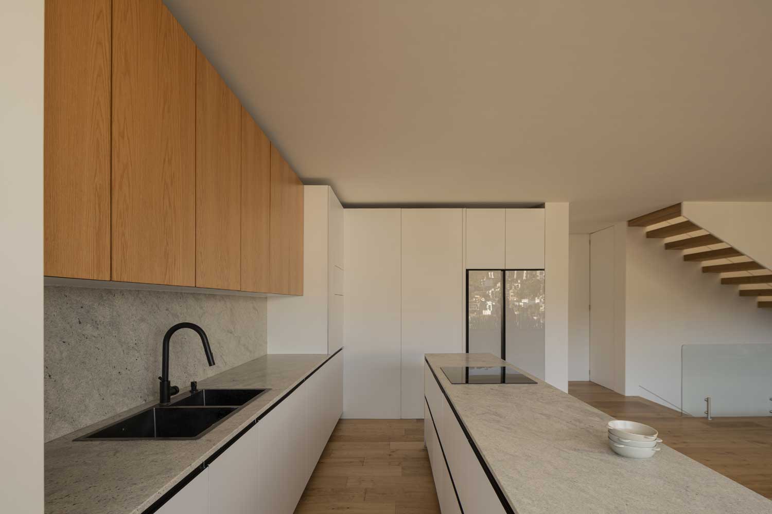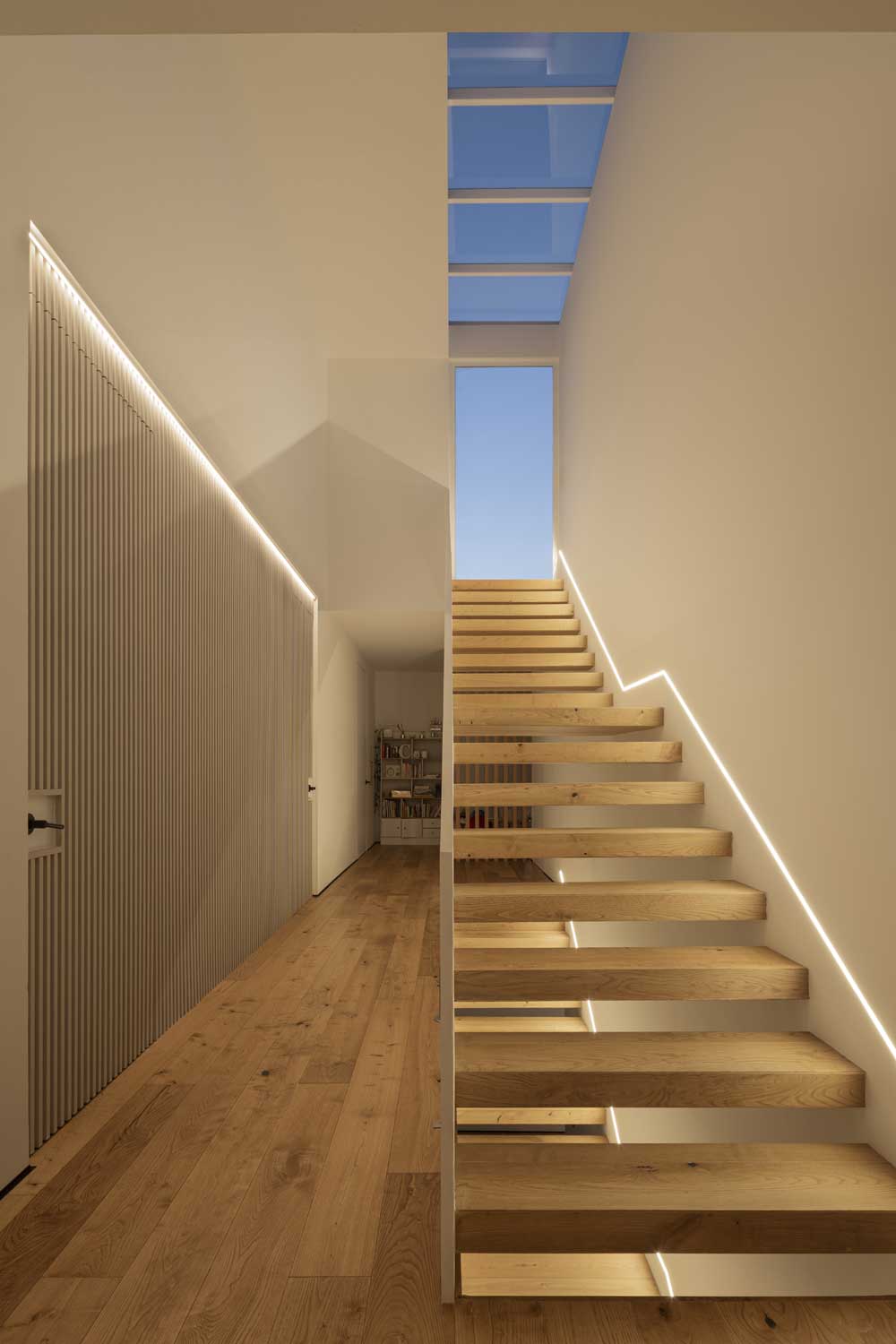 El eje vertebral de la circulación es una escalera recta que organiza la distribución de toda la vivienda, convirtiéndose en un elemento articulador de los espacios.