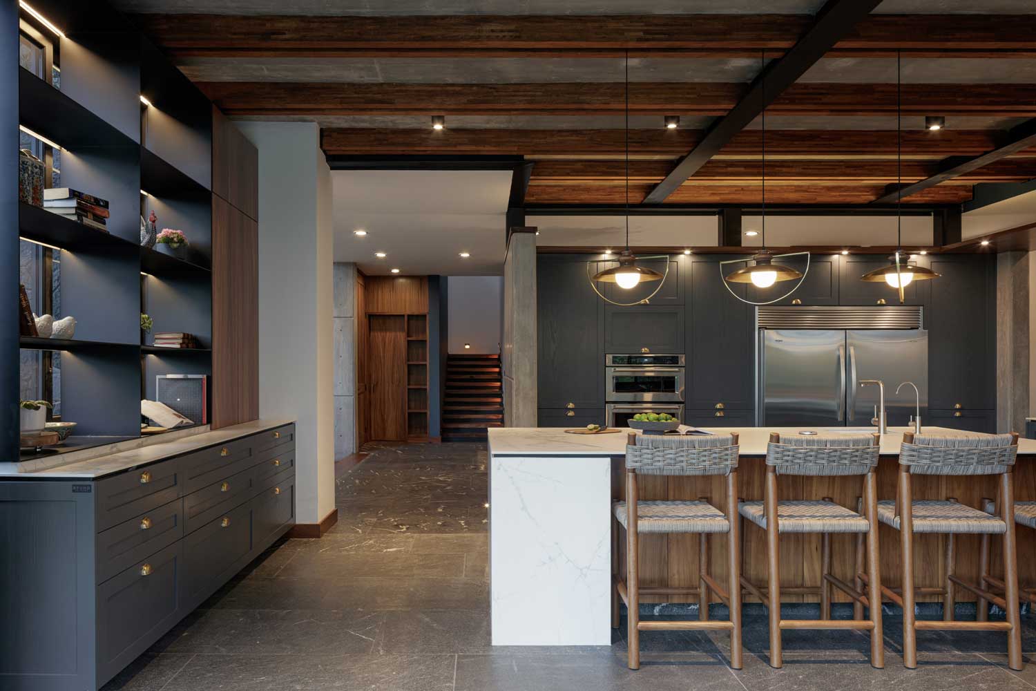 La integración completa del proyecto permea en todos los detalles, la dignidad de los materiales, en su estado puro y natural en el que envejecen y se entremezclan siempre al contexto; fue la idea que se transportó también al interiorismo.