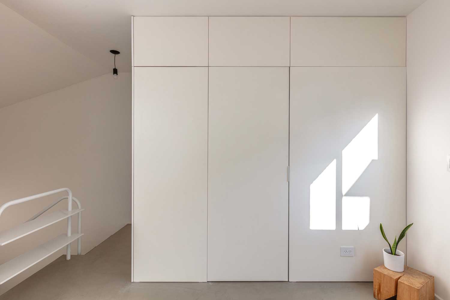 As a primary operation, it was decided to move the bedroom to a new upper floor, allowing it to rise above the neighboring apartments and access both natural light and direct ventilation.