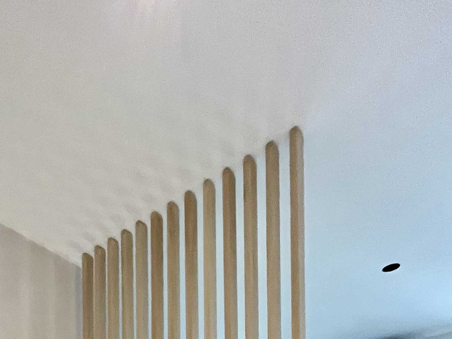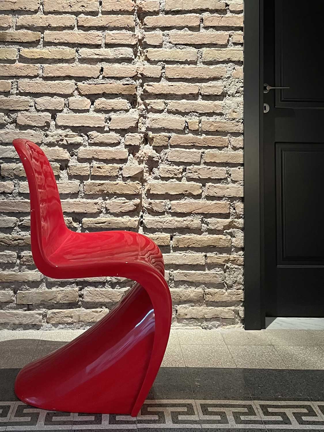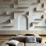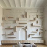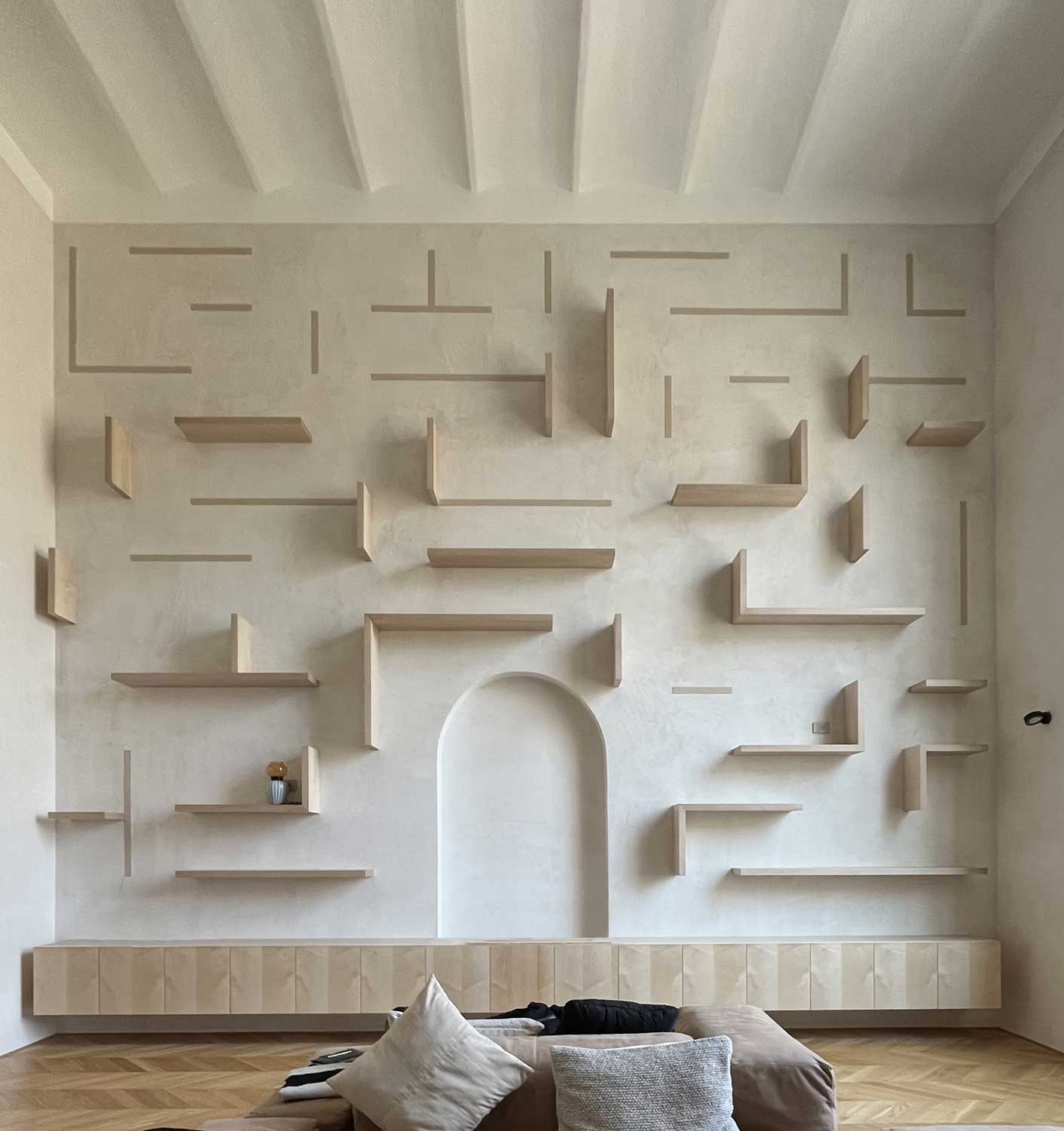 – En el salón es sin duda la estrella de la ambientación, en realidad casi más una instalación artística, que alternando módulos bidimensionales y tridimensionales dibuja un patrón preciso cuidadosamente equilibrado junto con los clientes.