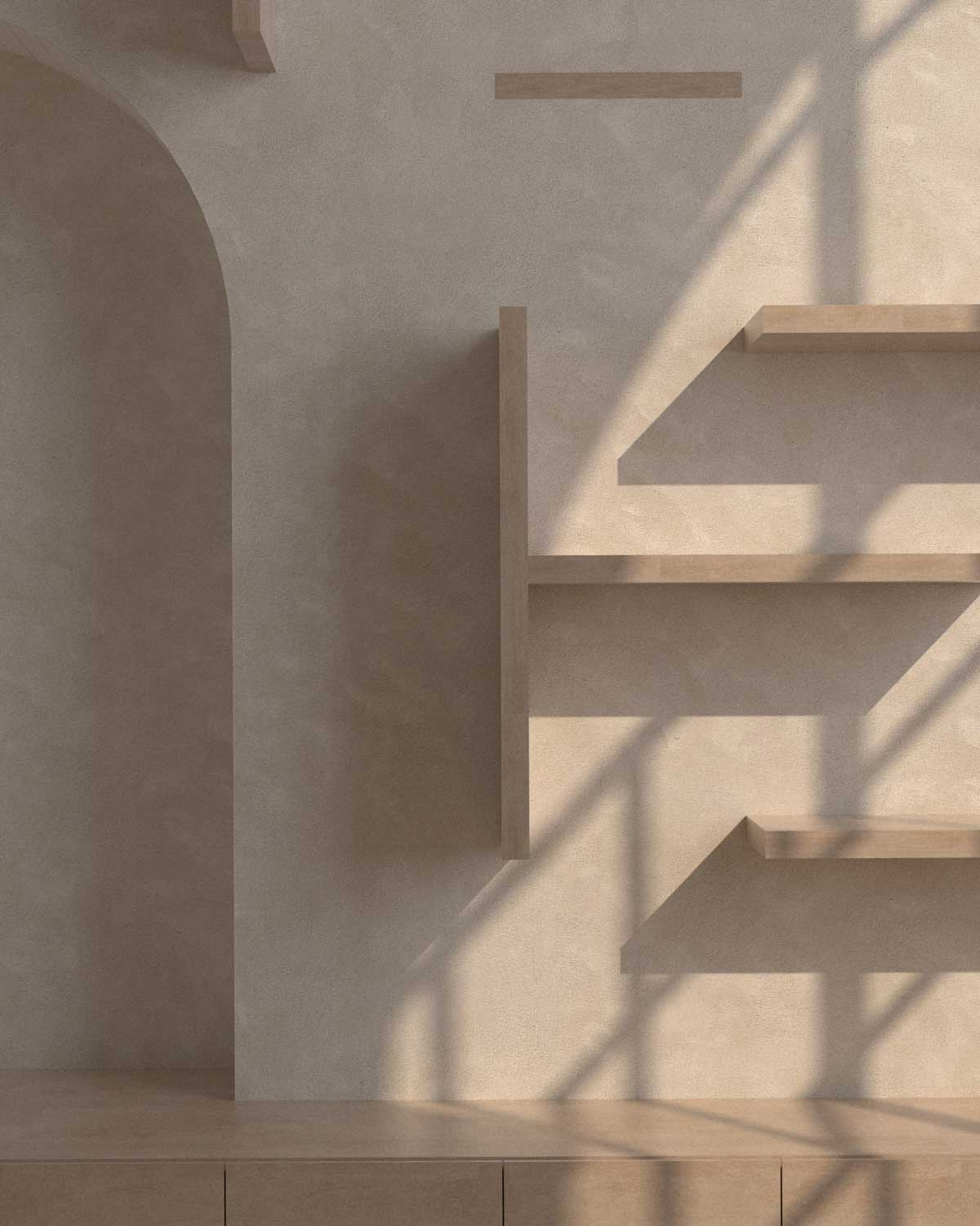 La aportación fotográfica del cliente también confirma el carácter deseado: ausencia de color puro y, en su lugar, predilección por el material, casi siempre interpretado mediante el uso de madera, piedra y yeso arenoso, siempre en torno a tonos tierra naturales y cálidos.