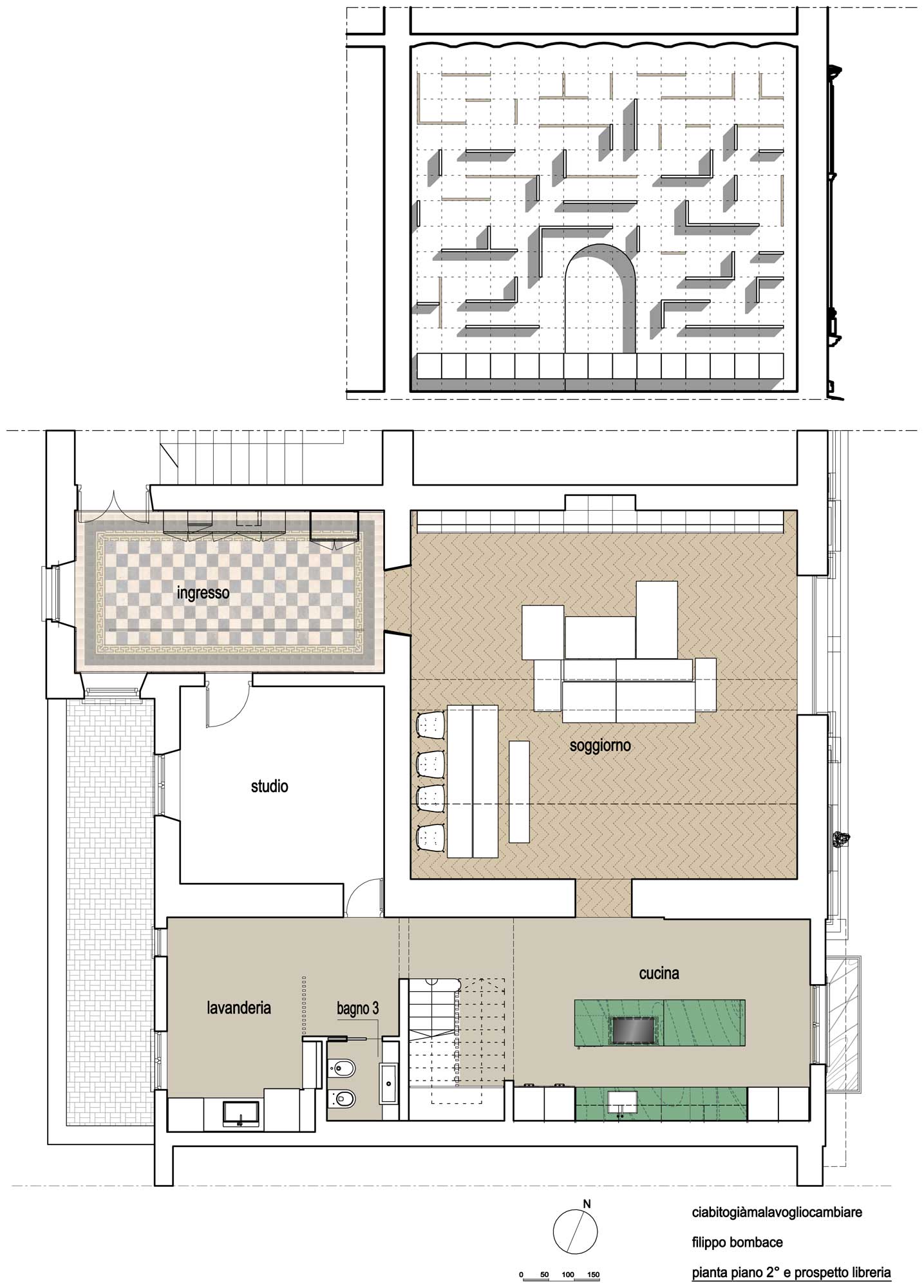 Reforma de vivienda ciabitogiàmalavogliocambiare (Roma, Italia) por Filippo Bombace. Comprar una casa recién reformada, pero darse cuenta más tarde, mientras se vive en ella, de que no se corresponde con uno mismo; esto es lo que le ha ocurrido a la joven pareja propietaria de un particular inmueble de tres plantas en el barrio Esquilino de Roma, originalmente sede (finales del siglo XIX) de una academia de arte, como se desprende sobre todo del generoso tamaño del salón principal, caracterizado por su considerable planta (unos 8×8 metros), pero sobre todo por su llamativa altura -todavía de casi 8 metros- y el gran ventanal que se abre al jardín situado frente a él.