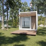 Hüga de 45 m2 (3,90×3,90×11 metros) está concebida para apreciar el paisaje al tener grandes ventanas panorámicas que se mezclan con la naturaleza y facilitan el acceso de más luz natural.